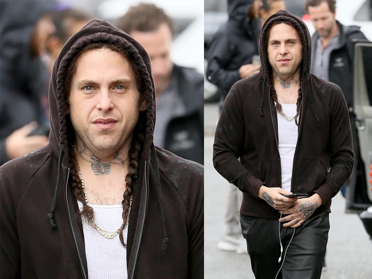 Photos Jonah Hill Looks Unrecognizable With Braided Hair And Tattoos On Maniac Set Men S Journal